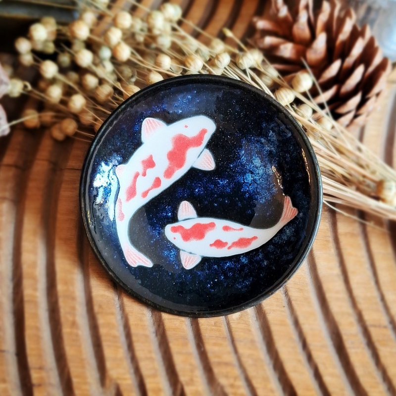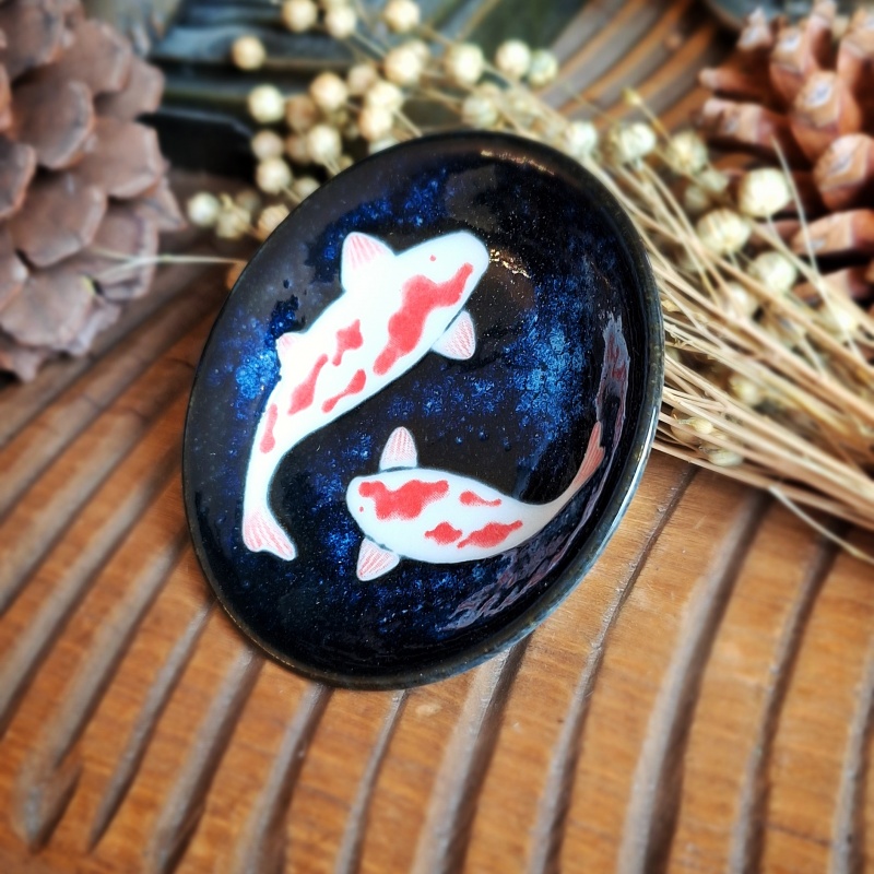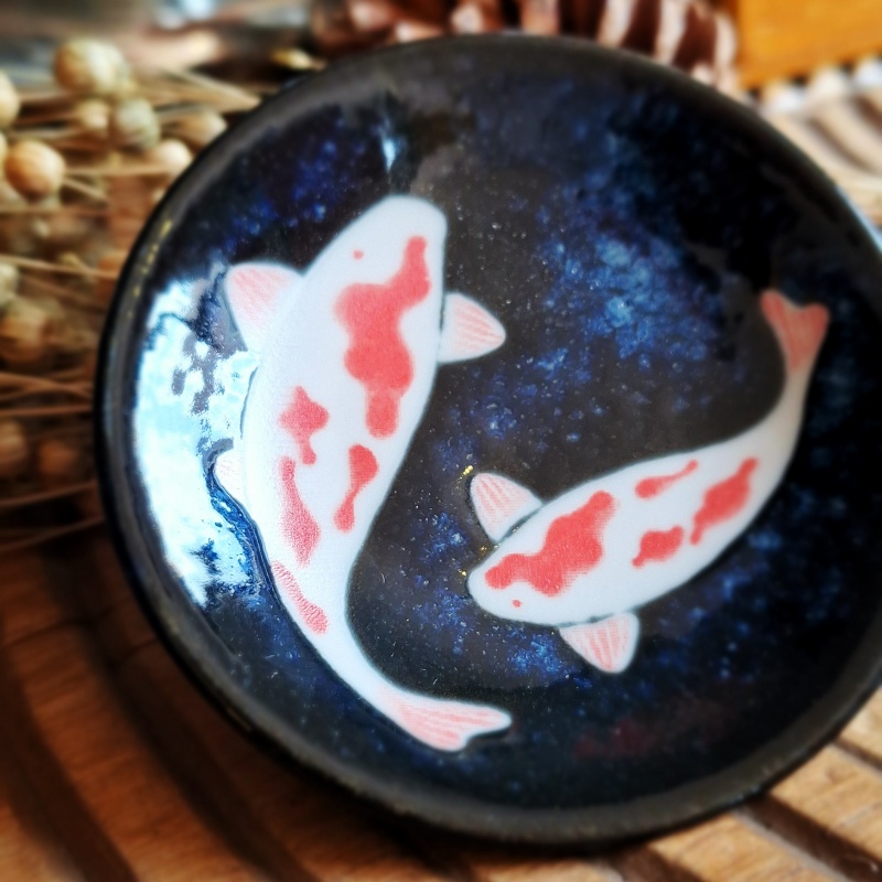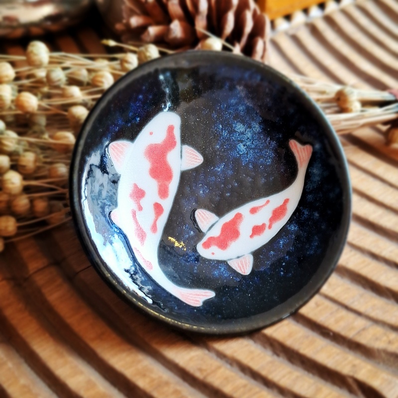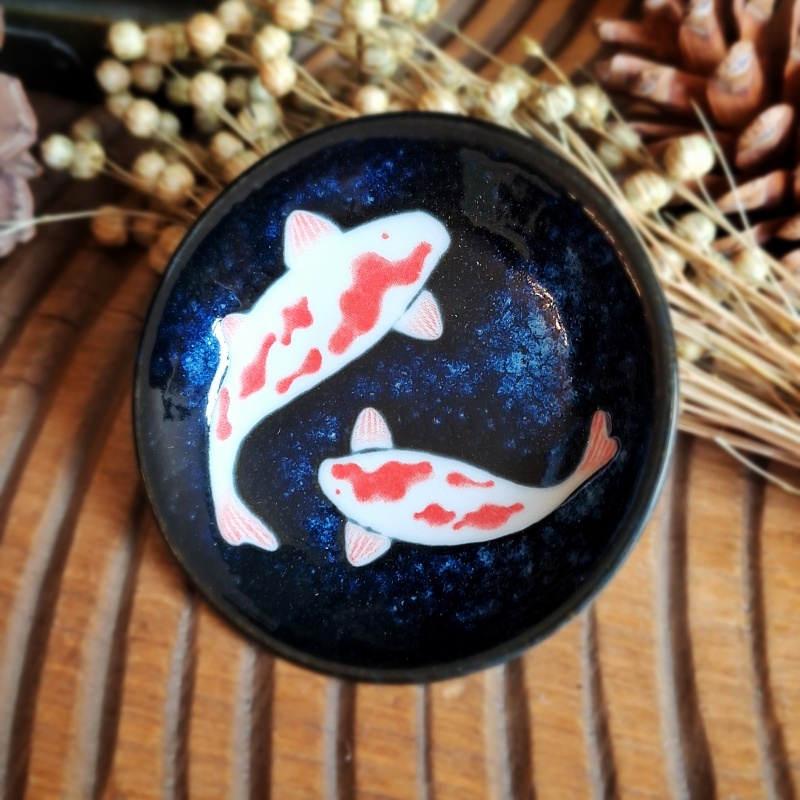 Dans l’iconographie japonaise, la carpe koï (nishikigoi) incarne force, persévérance et prospérité. Issue de variétés ornementales importées de Chine dès l’époque Edo, elle s’est enracinée dans l’art et la culture nippons, notamment à travers la légende de la carpe remontant le fleuve pour se transformer en dragon.