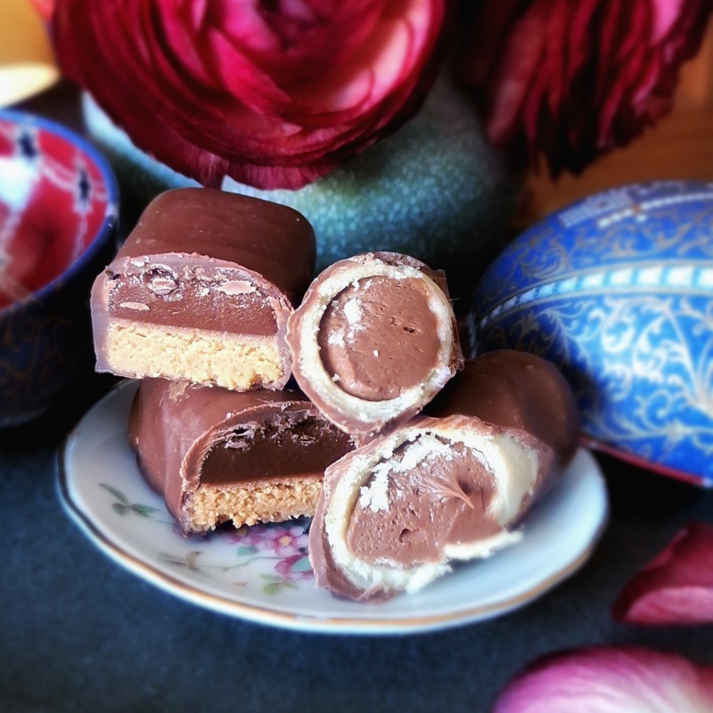 ingrédients: chocolat extra fondant (pâte de cacao, sucre, beurre de cacao, arôme naturel vanille, lécithine de soja), pâte de noisettes, cacao dégraissé, chocolat au lait (noisettes, lait écrémé en poudre, poudre de cacao dégraissé, vanilline, lactose.