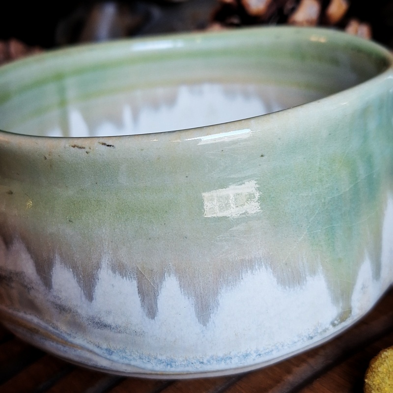 Bol en céramique, recouvert de glacis émaillé. Couleur inspirée de la couleur des prairies en hiver (Midori en japonais).