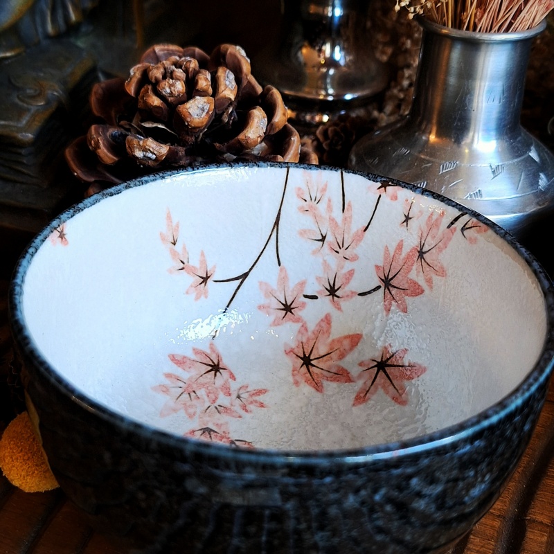 Bol en céramique traditionnel, recouvert de glacis émaillé. motifs inspirés de la couleur des feuilles d'érables (Aka en japonais)