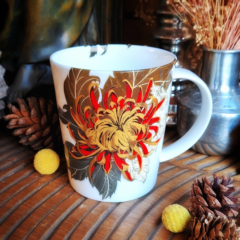 Il est célébré chaque automne lors de la fête du Kiku no Sekku, où l’on admire ses innombrables variétés, travaillées comme des œuvres d’art vivantes. Dans les arts traditionnels: laque, céramique, textile ou peinture, le kiku apparaît comme motif de raffinement et de longévité. Fleur de l’empereur, il incarne à la fois la continuité de la nation et la quête d’une beauté calme, parfaite et durable.