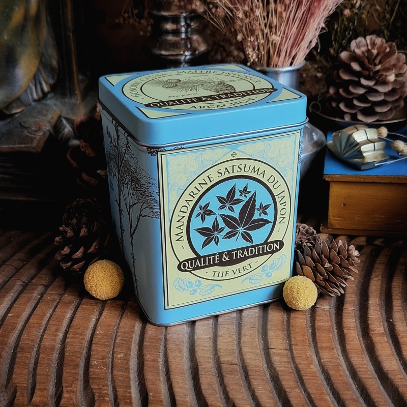 Boîte Mandarine satsuma du Japon, thé vert 150 grammes