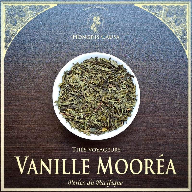 Thé vert, parfumé à la vanille de Tahiti, tasse lumineuse et fraîche, goût subtil et délicat. Un réconfort absolu!