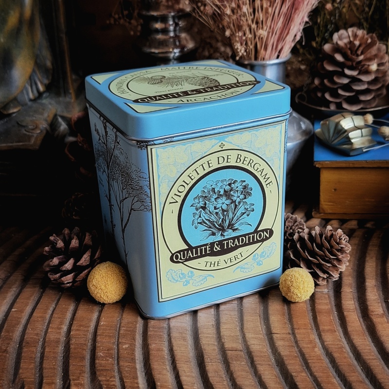 Boîte Violette de Bergame, thé vert 150 grammes